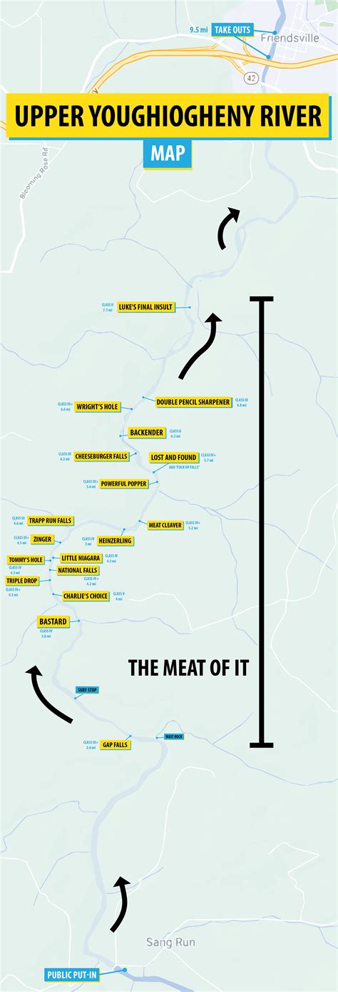 In summary, the Upper Yough Rafting Map is a valuable resource for adventure enthusiasts looking to conquer the challenging rapids of the Upper Youghiogheny River. It provides detailed information about the river, helping rafters plan their trip and navigate the rapids with ease. Whether you're a beginner or an experienced rafter, the Upper Yough Rafting Map is a must-have for your next adventure.